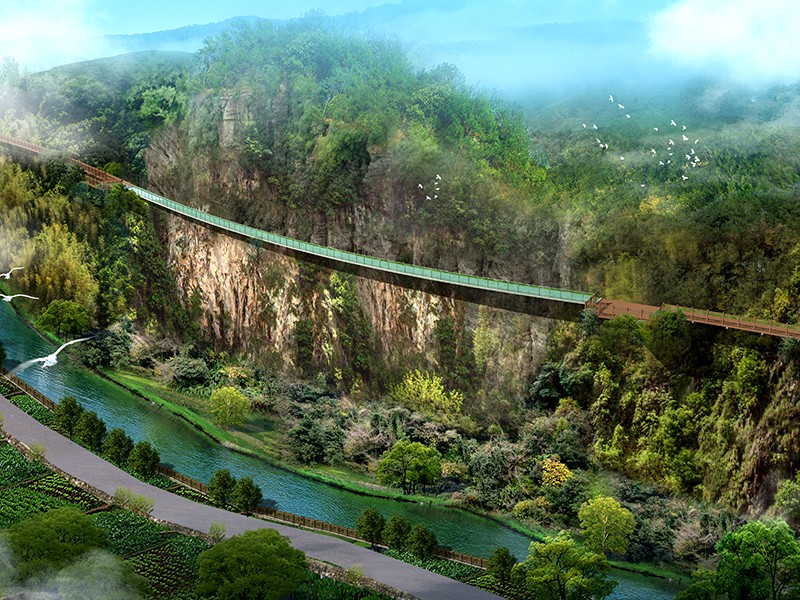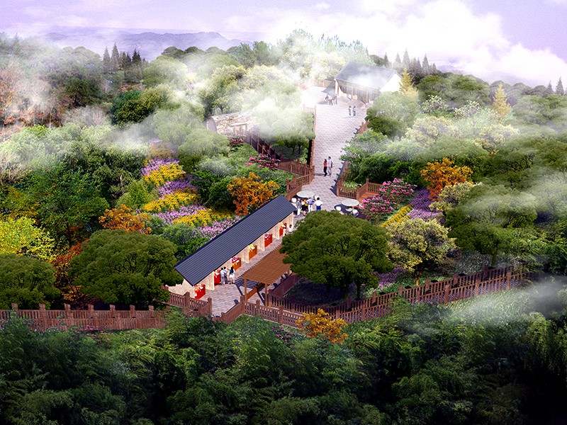 整个栈道,或石块铺地,或栈桥凌空。无论路、桥、亭、阁,都充盈着山林野趣。在建筑风格上,它们朴素洁雅又灵活多姿。在栈道上,有的亭阁依树而立,有的以树为中柱,迥心式景亭。人们向树小憩,临阁观景,别有一番风味。