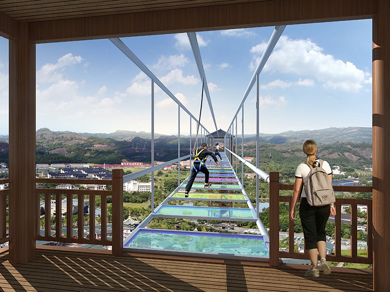 步步惊心挑战桥都是建在悬崖峭壁之上,其很大一部分动机在于吸引人的眼球,这样才能带动当地旅游业的发展。它是由镂空木板桥、铁锁桥和彩色玻璃桥3条高空长桥组成,走在铁索桥上一步一摇步步惊心。