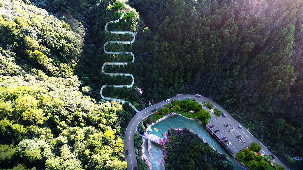 玻璃漂流水滑道是水上游玩的新的项目,适用于旅游景点、游乐 园等场地,水滑道能够基本建设在山中,在滑下来的全过程中赏析田林中的景色。