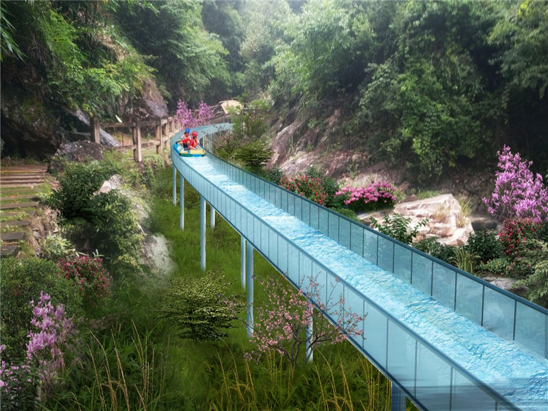 玻璃漂流水滑道是水上游玩的新的项目,适用于旅游景点、游乐 园等场地,水滑道能够基本建设在山中,在滑下来的全过程中赏析田林中的景色。