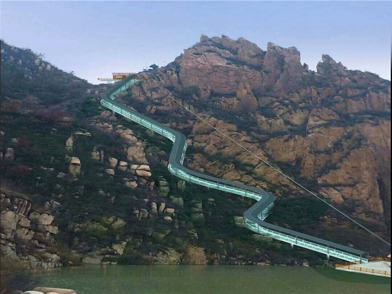 玻璃水滑道经受风吹、雨打、曝晒和冷冻,很容易因外界原因出 现裂纹。另外由于,高空滑道施工的整个结构锚在悬崖的岩体中,岩 体受工程地质和水文地质的影响,岩体强度随着时间的推移可能降 低,这就要求经常检查滑道结构的空载和荷载、包括风载,自振频率 及挠度是否有变化。需要有专业的人进行后台的维护。 玻璃水滑道减少旅行路途,让游客体验到有趣刺激的旅游项目, 另一方面在山区较为危险的路段能够为游客提供方便,为游客的安全 下山提供安全保证,同时也为景区增添了一道独特风景。
